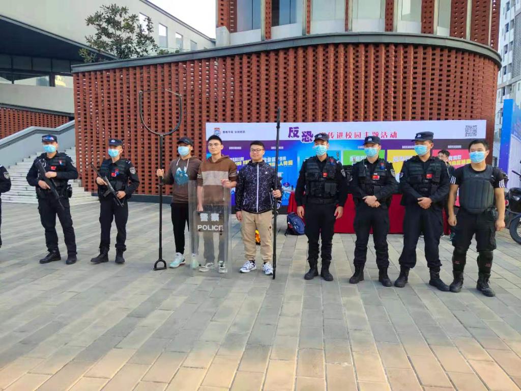 12月27日上午,學生活動中心廣場舉行了"反恐宣傳教育進校園“主題活動啟動儀式,江門市公安局反恐支隊和蓬江分局領導、學校校園安全保衛處處長、副處長出席了儀式,約100名師生代表參加了啟動儀式。