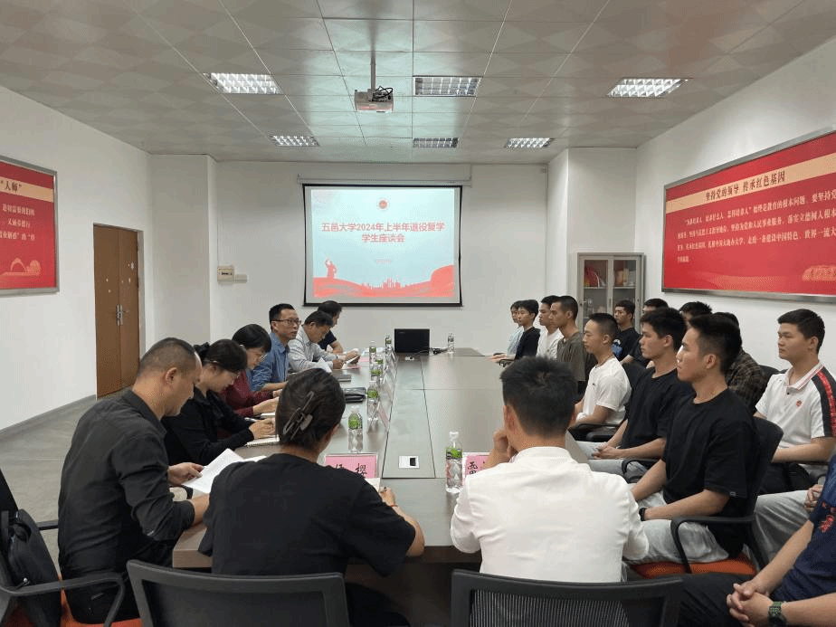為做好退役復學學生服務工作,解決退役學生學習生活上的問題,幫助他們盡快適應校園生活。4月9日,學校在南主樓233室召開2024年上半年退役復學學生座談會。江門市退役軍人服務中心主任梁炳燦,學生處處長李華、教務處副處長劉羽及退役復學學生參加會議。座談會由武裝部部長徐平華主持。