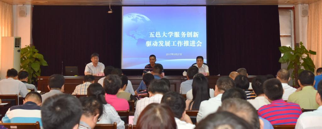 5月27日下午,學校召開五邑大學服務創新驅動發展工作推進會,深入貫徹落實全省和江門市創新發展大會精神,部署推進服務創新驅動發展相關工作。全體校領導,各學院院長、黨總支書記、分管學科建設工作副院長,各黨政管理、科研及服務機構主要負責人參加會議。