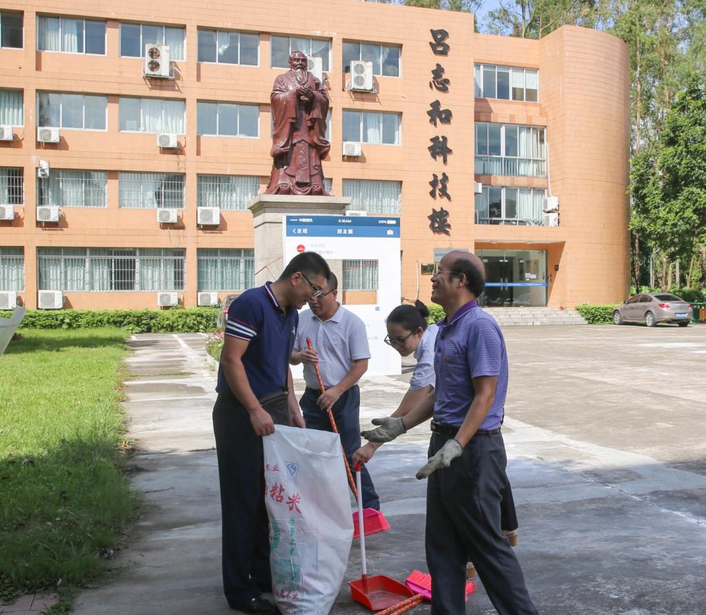 在這特別的節(jié)日里,按照學(xué)校黨委安排,結(jié)合“兩學(xué)一做”學(xué)習(xí)教育要求,校領(lǐng)導(dǎo)們帶領(lǐng)全校黨員在開學(xué)典禮結(jié)束后開展了“愛國衛(wèi)生”校園環(huán)境統(tǒng)一整治行動。全校的黨員教師胸佩黨徽以身作則,用榜樣的力量帶動學(xué)生、群眾,干群齊動手,師生齊上陣。除雜草,清垃圾,消滅衛(wèi)生死角,大家通力合作,以飽滿的熱情和認(rèn)真的態(tài)度投入到整治行動中,為學(xué)校帶來更加整潔、有序的育人環(huán)境,也以這種特別的方式共同度過了一個極其有意義的“教師節(jié)”。(文/圖 宣傳部)