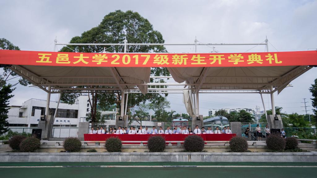 開學(xué)典禮上,在校生代表以及2017級新生代表分別作了發(fā)言。開學(xué)典禮在校歌《五邑大學(xué)更輝煌》中圓滿結(jié)束。