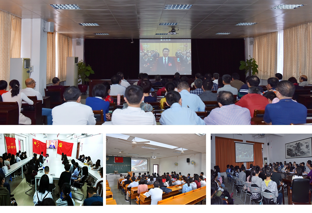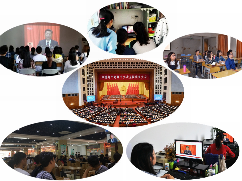 在莊嚴(yán)的人民大會堂內(nèi)、雄壯的國歌聲里,承載著億萬人民的殷切期待,肩負(fù)著繼往開來的歷史使命,黨的十九大隆重開幕。五邑大學(xué)師生黨員們圍坐在電視、電腦屏幕前,懷著激動和期待的心情,和現(xiàn)場兩千多名黨代表一起,聚精會神聽報告全神貫注做筆記,不時交流感想,每一個人都沉浸在黨的十九大勝利召開的熱烈氛圍中。