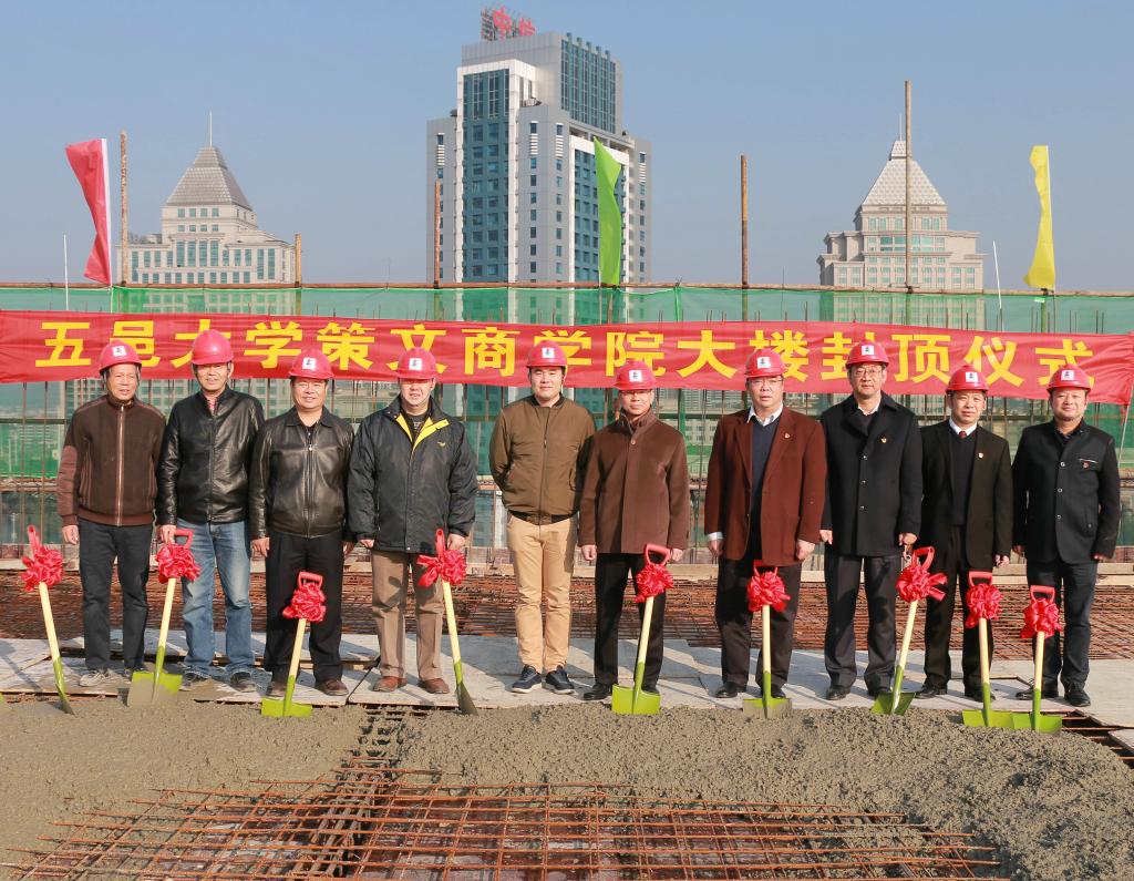 12月18日上午9時,天朗氣清,陽光明媚,策文商學院大樓順利封頂。學校在校的校領導和施工單位、監理單位代表等參加了封頂儀式。大樓建設順利,預計2018年5月竣工交付使用。
