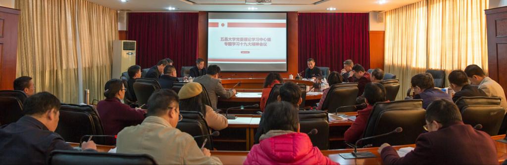 12月22日,學校黨委理論學習中心組在南主樓七樓小會議室召開黨的十九大精神第三次集體學習會議。中心組全體成員及各黨總支(直屬黨支部)書記參加了學習。黨委書記張焜主持會議并以《不忘初心 牢記使命 為建設廣東省高水平工科大學而努力奮斗》為題作了輔導報告。
