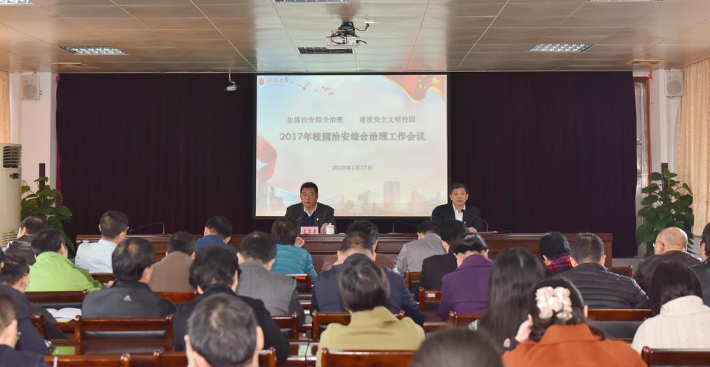 陳廷根總結(jié)了我校2017年在治安維穩(wěn)、交通管理、消防安全、網(wǎng)絡(luò)輿情、食堂食品安全等方面取得的主要成績(jī)和目前綜治工作存在的不足,提出了2018年綜治工作思路并對(duì)寒假安全工作進(jìn)行了部署。他說(shuō),在學(xué)校黨委的正確領(lǐng)導(dǎo)下,經(jīng)過(guò)全校師生員工的共同努力,2017年校園治安秩序良好,交通管理有章有序,消防安全得到明顯改善,網(wǎng)絡(luò)輿情良性發(fā)展,食堂食品安全管理更加規(guī)范,綜治工作取得明顯成效。全年未發(fā)生過(guò)安全責(zé)任事故、刑事案件、群體性事件和食品衛(wèi)生安全事件。今年我校將在已有成績(jī)的基礎(chǔ)上加強(qiáng)與屬地公安、消防等部門(mén)的聯(lián)系,聯(lián)防聯(lián)控,同時(shí)加大人防技防物防等基礎(chǔ)設(shè)施投入,進(jìn)一步提升校園安全文明建設(shè)與管理水平。