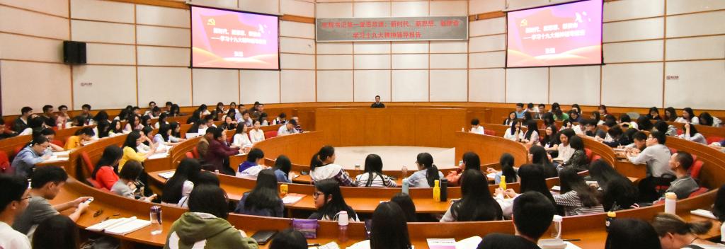 “我們在習(xí)近平新時代中國特色社會主義思想引領(lǐng)下進入了中國特色社會主義新時代。要完成黨在新時代的歷史使命,靠的是堅定的馬克思主義信仰,靠的是中國特色社會主義四個自信,靠的是全體中華兒女對中華民族偉大復(fù)興中國夢的深切向往與持續(xù)努力,也要靠我們在座的年輕人一步一個腳印的艱苦奮斗來推動我們黨和國家事業(yè)的發(fā)展!”3月29日晚上于十友樓二樓國際會議廳,五邑大學(xué)校黨委書記張焜教授以“新時代、新思想、新使命——學(xué)習(xí)十九大精神輔導(dǎo)報告”為主題,為社會工作、會計學(xué)(精算)、國際經(jīng)濟與貿(mào)易等專業(yè)2016級本科生及學(xué)校相關(guān)部門負(fù)責(zé)人、各學(xué)院黨總支副書記、全體輔導(dǎo)員、馬克思主義學(xué)院教職員工上了一堂豐富生動的思想政治理論課。