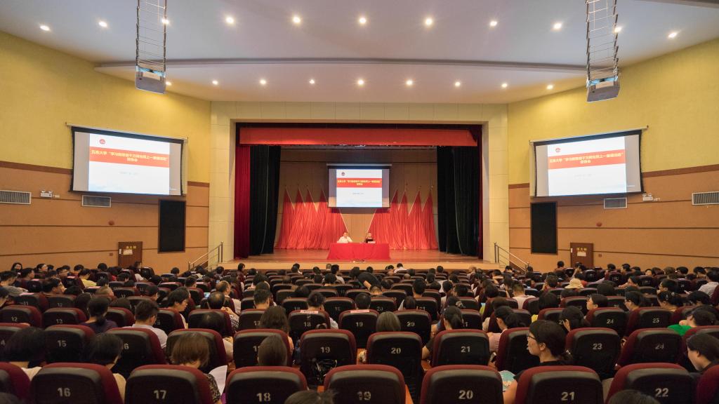 為深入學習貫徹習近平總書記在北京大學師生座談會和紀念馬克思誕辰200周年大會上重要講話精神,根據省教育廳的要求和部署,6月19日下午,“學習新思想千萬師生同上一堂課活動”五邑大學首場授課在呂志和禮堂舉行。廣東省高校“學習新思想千萬師生同上一堂課活動”講師團成員、我校馬克思主義學院院長,陳新田教授進行首場授課。全校教職工以及學生代表共千余名師生聆聽了這堂大課。這場別開生面的思政課由校黨委副書記羅清旭主持。