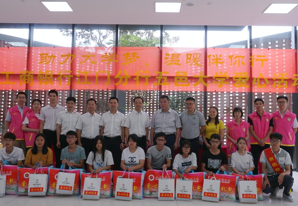 學校今年設置的“綠色通道”一站式服務更加細致周到:一是貫徹落實《廣東省教育廳辦公室關于取消家庭經濟困難認定申請表蓋章事項的通知》精神,由輔導員、班導師、學長在暑假期間切實傳達至每一名新生,學校本著“信任在先”的原則,家庭經濟困難學生只需填表,無需到當地村鎮、街道蓋章,到校交表即可;二是設立資助政策咨詢點,由專門人員一站式解答新生及家長們對“綠色通道”、國家助學貸款、獎助學金、勤工助學等的疑問;三是學校聯合工商銀行江門分行為綠色通道的家庭經濟困難新生準備一份愛心大禮包,內有軍訓服一套、秋被一套和餐券兩份,切實解決困難新生入學時的燃眉之急。報到當天,學校在學生綜合服務中心舉行“工商銀行江門分行五邑大學愛心活動”,中國工商銀行江門分行副行長張振強、行長助理談秉剛一行,與五邑大學黨委副書記李靄康為200余位貧困生送上了的愛心禮包。