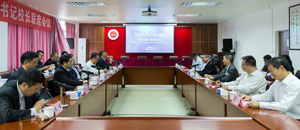 11月17日,2018年廣東地方高校書記校長聯(lián)席會議在五邑大學(xué)召開。廣東石油化工學(xué)院原黨委書記、現(xiàn)廣東技術(shù)師范學(xué)院黨委書記凌靖波,廣東石油化工學(xué)院黨委書記、校長張清華,國家督學(xué)、韶關(guān)學(xué)院校長廖益,嘉應(yīng)學(xué)院黨委書記吳琦,惠州學(xué)院黨委書記、校長彭永宏,東莞理工學(xué)院黨委書記成洪波,佛山科學(xué)技術(shù)學(xué)院黨委書記曾崢、校長郝志峰,肇慶學(xué)院黨委書記曾桓松,五邑大學(xué)黨委書記張焜、校長張運華和黨委副書記、紀(jì)委書記羅清旭,黨委副書記李靄康,副校長李霆、陳廷根等出席會議,圍繞新時代地方高校體制機制改革所面臨的問題及對策進行研討。會議由張焜主持。