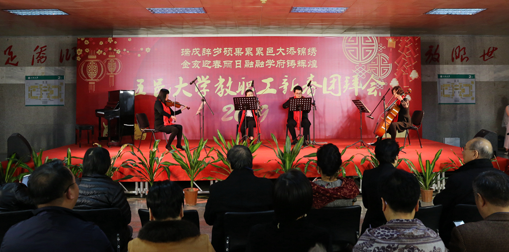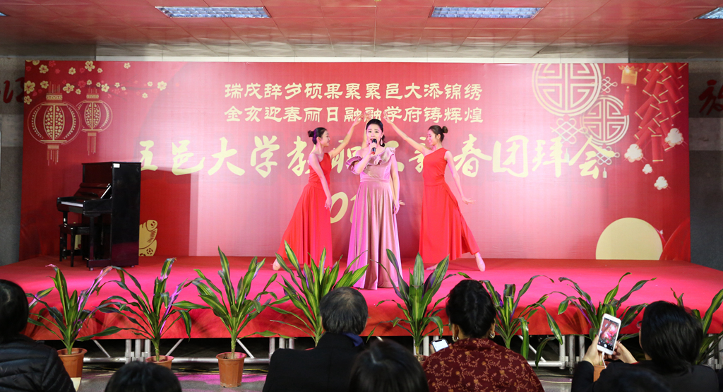團(tuán)拜會(huì)上,學(xué)校師生為大家表演了鋼琴四手聯(lián)彈《春節(jié)序曲》,歌曲《我想對(duì)你說》、青年博士的小合唱《我和我的祖國》和舞蹈等精彩節(jié)目。(文/工會(huì) 圖/宣傳部)