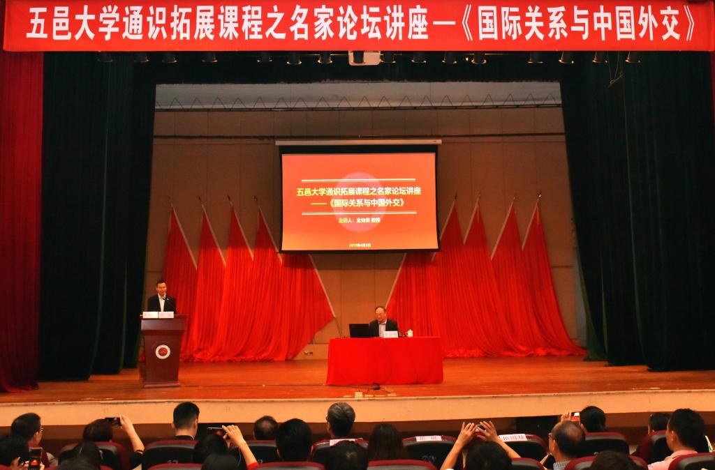 4月3日上午,五邑大學通識教育高端講座第9講在呂志和禮堂舉行。此次講座邀請了金燦榮教授為學校師生講授《國際關系與中國外交》。