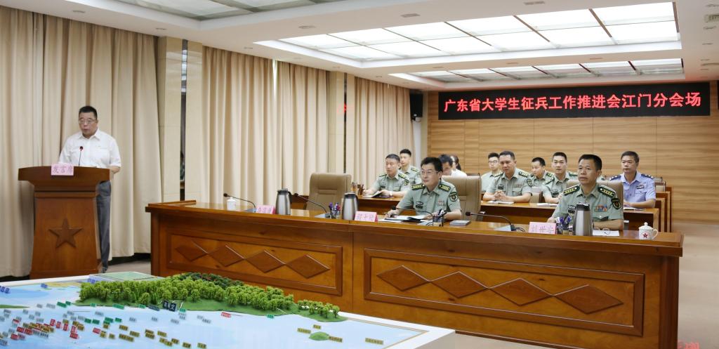 6月21日上午,廣東省大學生征兵工作推進會電視電話會議在省軍區召開,各市、縣兵役機關設分會場。省軍區副司令員廖正榮、省征兵辦主任吳永忠、省教育廳副巡視員邱克楠在主會場出席會議并講話。五邑大學黨委副書記李靄康代表學校在會上作交流發言。