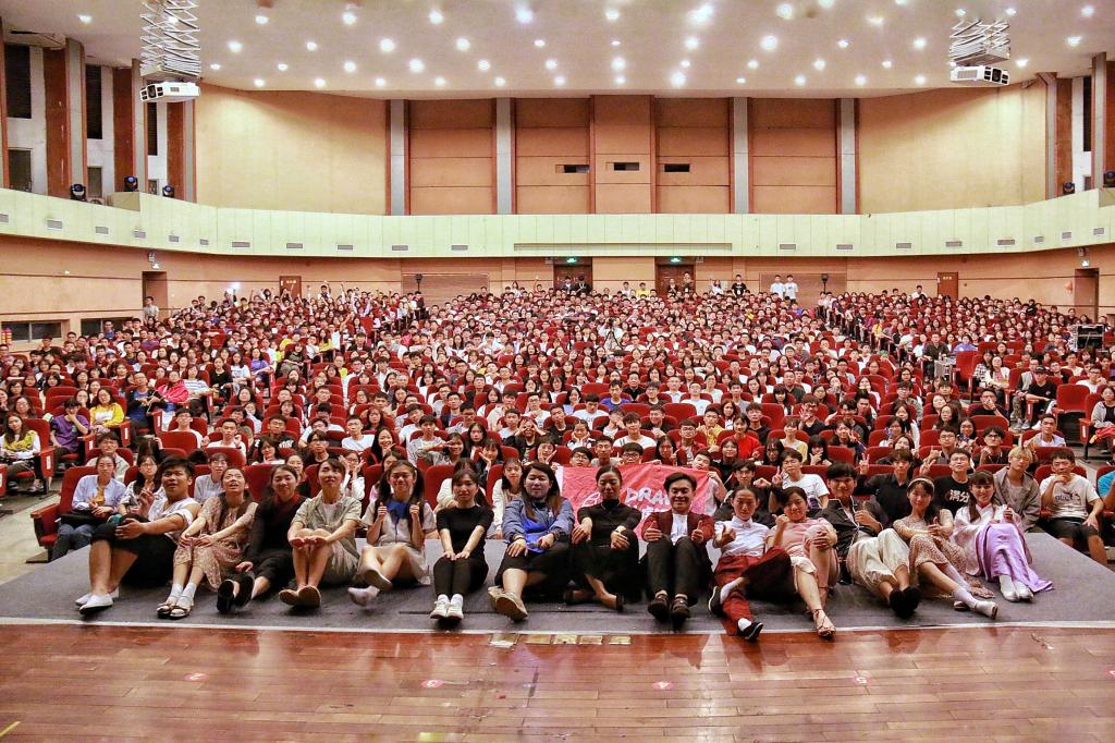 話劇的精彩演出贏得了師生們的陣陣掌聲,其演繹的家國情懷也讓師生深受感動,在演員的笑與淚中觸發思想共鳴。演出結束后,話劇演員還與五邑大學話劇社的同學們進行交流互動。