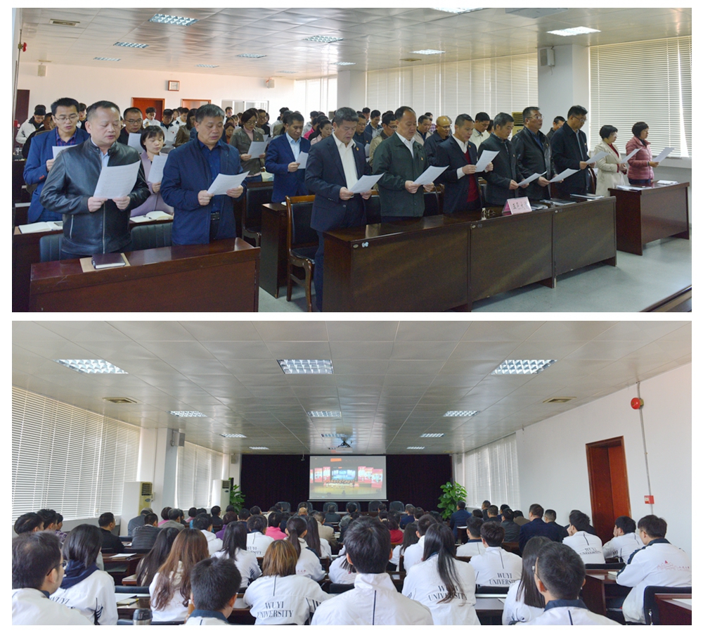 12月4日,是國家第六個憲法日。教育部在北京設立主會場舉辦“憲法晨讀”活動,五邑大學全體校領導、各職能部門負責人、各二級黨組織書記及學生代表近百人在南主樓七樓大會議室集中觀看活動直播,并跟讀憲法部分條款,各學院(部)也分別組織師生集中觀看直播并跟讀憲法條款,引導師生深入學習宣傳憲法,弘揚憲法精神,維護憲法權威。