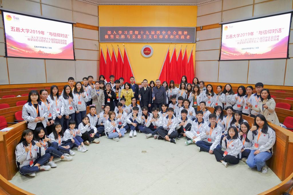 12月20日晚,五邑大學(xué)2019年“與信仰對(duì)話”專(zhuān)題報(bào)告會(huì)在十友樓二樓國(guó)際會(huì)議廳舉行。校黨委書(shū)記張焜教授作了題為《學(xué)習(xí)貫徹十九屆四中全會(huì)精神,做堅(jiān)定的馬克思主義信仰者和實(shí)踐者》的輔導(dǎo)報(bào)告。學(xué)校馬克思主義學(xué)院教師代表、各學(xué)院(部)團(tuán)組織書(shū)記、校青馬學(xué)員、校三會(huì)新生干部代表等參加報(bào)告會(huì)。