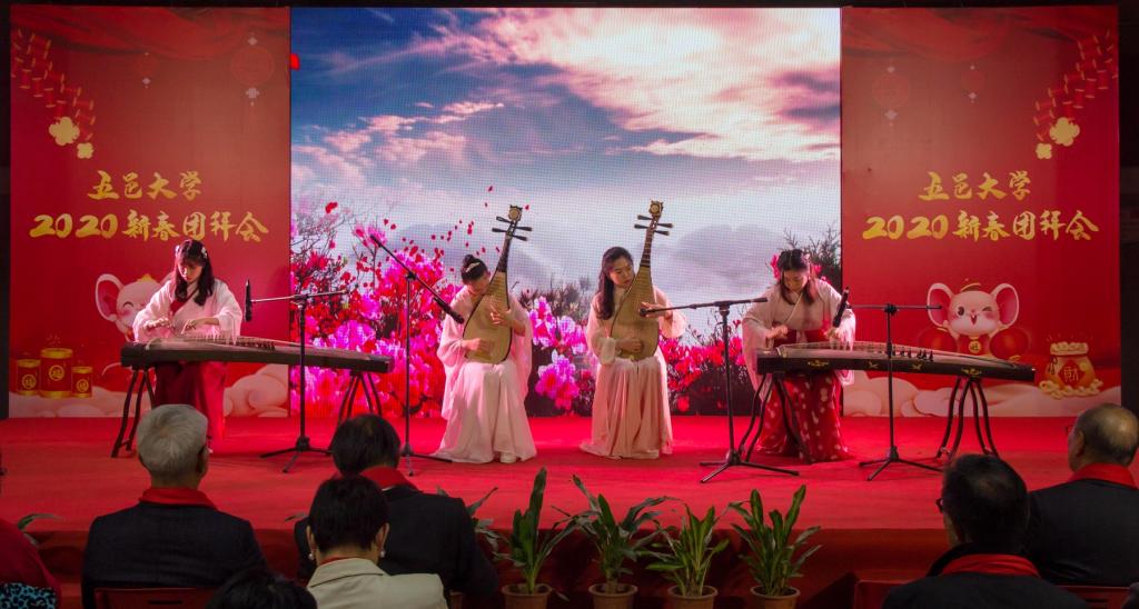 團拜會上,學校師生為大家表演了歌曲《共圓中國夢》、舞蹈《傣樂》、民樂合奏《山丹丹花開紅艷艷》、京劇《梨花頌》等精彩節目。(文/圖 宣傳部)