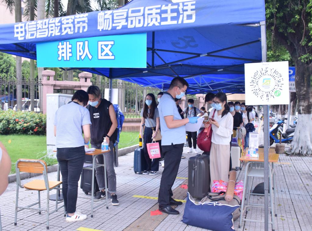 學校多措并舉筑牢疫情防控的堅固防線,確保學生返校后的各項工作穩定有序。學校嚴格按照省教育廳的要求,在學生返校前已做好各項準備工作,對照“四精準”“六分”等要求,科學制定學生返校工作方案,專門制定《五邑大學新冠肺炎疫情應急處置預案》,明確成立應急處置領導小組、建立“四個一”工作機制等規定,并認真對照《廣東省大專院校、技工院校學生返校準備工作驗收參照樣表》,保證各項工作任務按照學生返校時間節點落實到位。同時,學校還開展了兩場新冠肺炎疫情防控應急演練,針對學生返校期間以及返校后可能發生的各類情況進行了全面細致的模擬演練,并據此完善工作方案,切實提高學生返校疫情防控和遇突發狀況的應急處置能力。