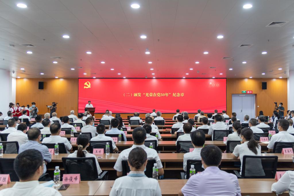 張焜發言指出,在建黨百年之際,黨中央決定向“光榮在黨50年”老黨員頒發紀念章,在中國共產黨歷史上屬于首次,體現了以習近平同志為核心的黨中央對老黨員的關心、關懷和褒揚。今年1到6月,我校563名青年學生和青年教師光榮入黨,這是時代賦予他們建功立業的人生際遇。我們要更加緊密地團結在以習近平同志為核心的黨中央周圍,始終在思想上政治上行動上同以習近平同志為核心的黨中央保持高度一致,堅定理想信念,學好用好黨的創新理論,賡續紅色血脈,發揚光榮傳統,和全校師生員工一道全力推進高水平理工科大學建設,為全面建設社會主義現代化國家、實現中華民族偉大復興的中國夢貢獻智慧和力量,以優異成績慶祝建黨100周年!