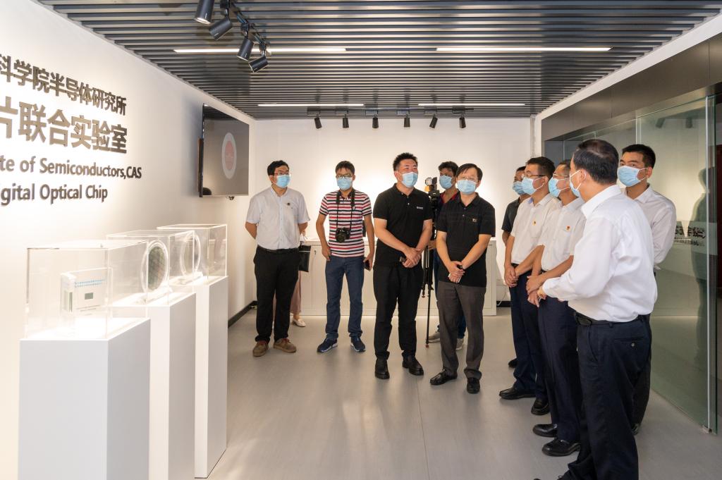 來到五邑大學-中國科學院半導體研究所數(shù)字光芯片聯(lián)合實驗室,陳岸明一行與五邑大學-中國科學院半導體研究所聯(lián)合實驗室黃苒博士、孫雷博士等進行了交談,重點了解了4800萬像素硅基液晶數(shù)字光芯片等重要研究成果以及數(shù)字光芯片產(chǎn)業(yè)化應用方向和市場。在調研過程中,陳岸明還了解了聯(lián)合實驗室基本運作和芯片設計有關情況,并對聯(lián)合實驗室開展下一步工作提出寶貴的指導意見。