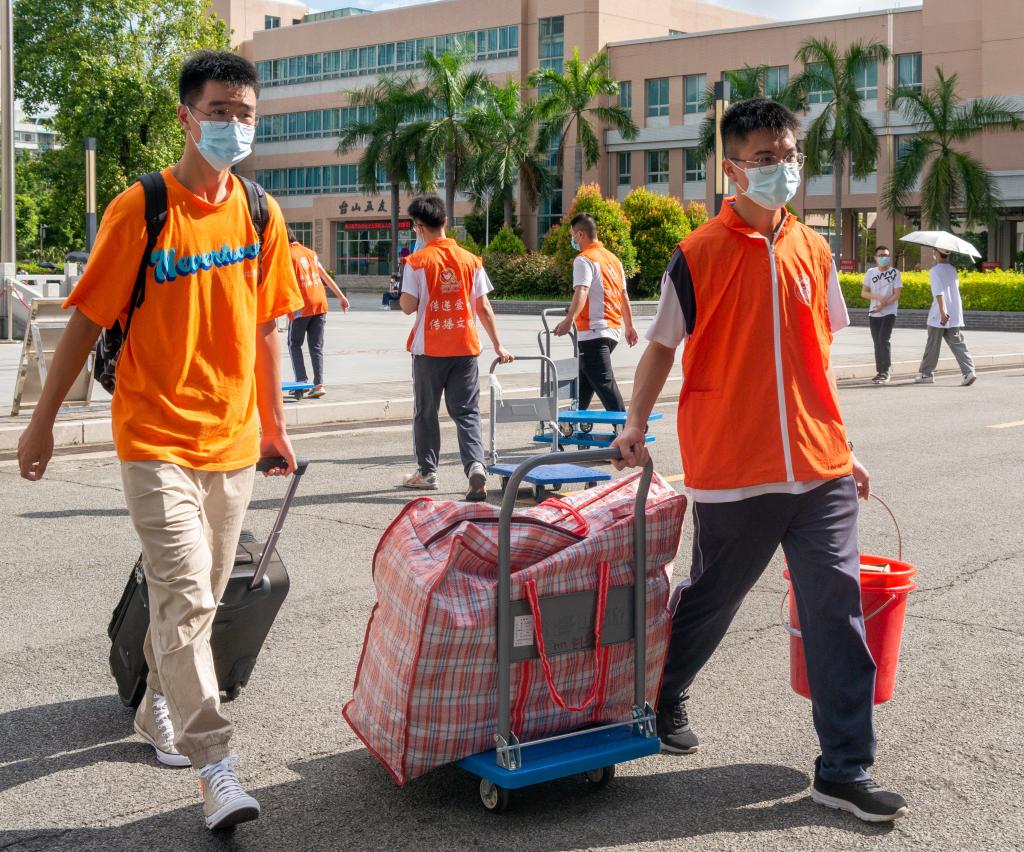 考慮到家長不能陪同進入校園,新生入校后,學校專門安排了接駁車將學生從校門口送達宿舍樓下,讓遠道而來的同學們不必為搬運行李而煩惱。另外特別安排了“一對一”新生接待服務,新生從在車站下車開始,到測溫掃碼進校、辦理報到手續(xù)以及入住宿舍,全程都有“一對一”志愿者提供周到服務,做到全程無憂。
