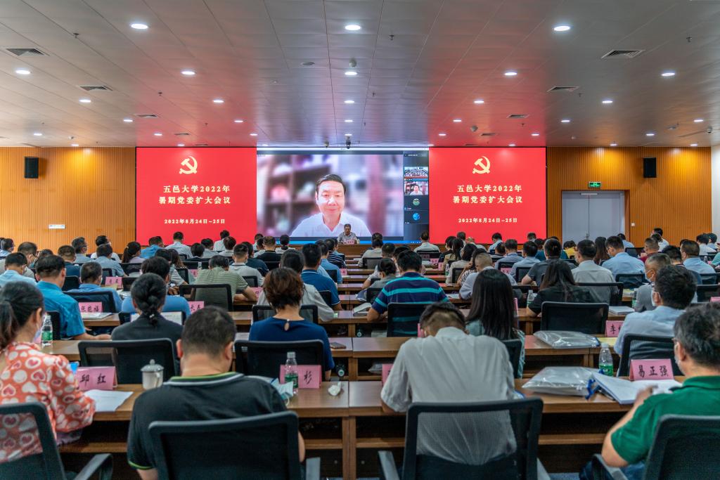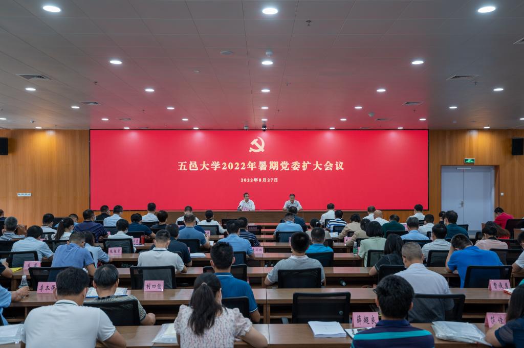 8月24日和27日,五邑大學召開2022年暑期黨委擴大會議。會議由黨委常委會主持。校領導,黨委委員、紀委委員,中層干部,校級科研機構負責人,在校市民主黨派及知聯會主要負責人,學校各民主黨派、僑聯會、知聯會主要負責人參加會議。