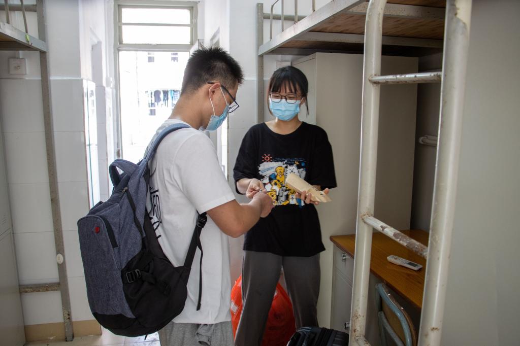 提供“一對一”接待服務。新生從在車站下車,到測溫掃碼進校、辦理報到手續以及入住宿舍等全過程都有志愿者做好“一對一”對接服務。