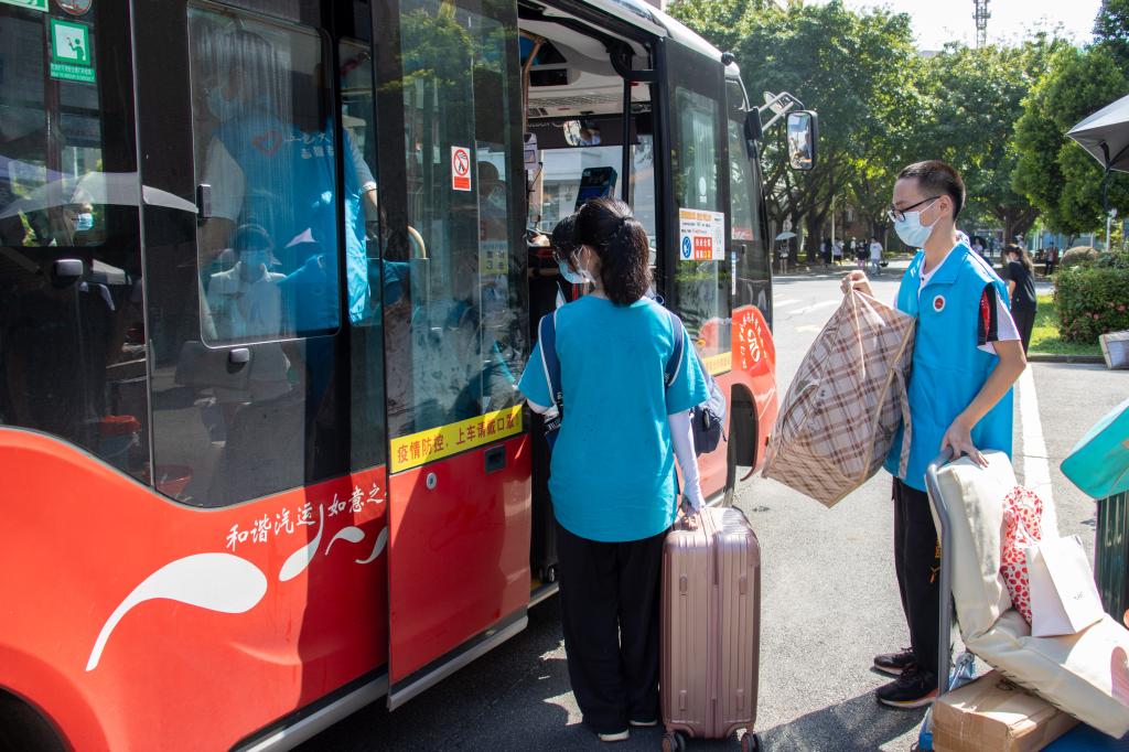 安排校內接駁車輛。新生入校后,學校專門安排了接駁車將學生從校門口送達宿舍樓下。