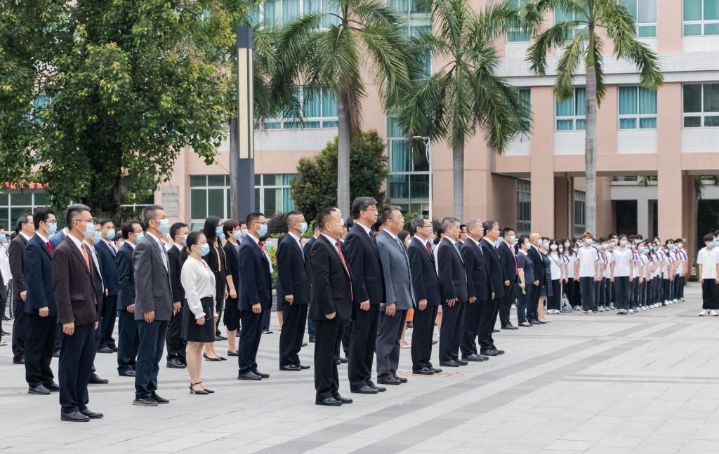 8月29日清晨,五邑大學舉行新學期第一天升國旗儀式,校黨委書記張焜、校長張運華等全體校領導,各職能部門負責人、學院(部)黨政主要負責同志、黨組織副書記、輔導員、學生代表參加了升旗儀式。
