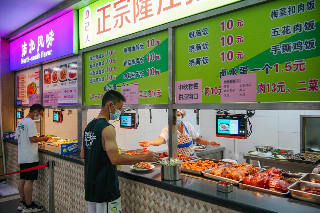 學(xué)校向每一位學(xué)生發(fā)放晚餐券和月餅水果券,學(xué)生憑券到食堂享用美味的晚餐和可口的月餅、水果。一口月餅、一頓晚餐,家鄉(xiāng)味道解鄉(xiāng)愁、暖心頭。