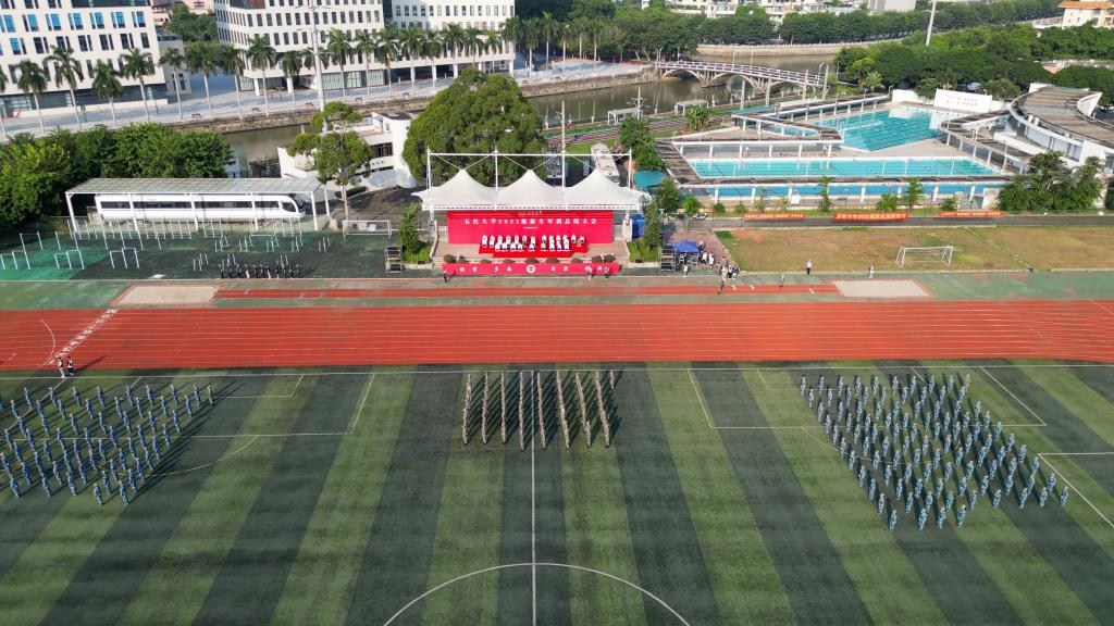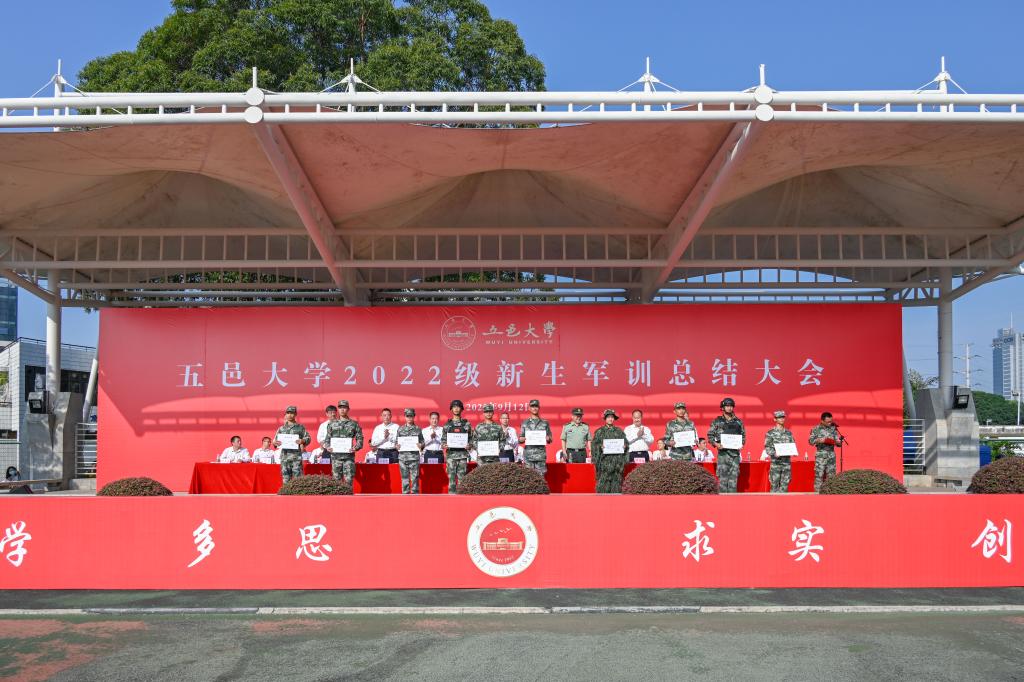 9月12日上午,五邑大學2022級新生軍訓總結大會在北區田徑運動場舉行。江門軍分區司令員王俊,校黨委書記張焜、校長張運華等全體校領導,學校有關職能部門負責人和軍訓工作領導小組全體成員,各學院(部)黨組織書記、副書記、新生輔導員以及2022級新生參加了總結大會。大會由校黨委書記張焜主持。