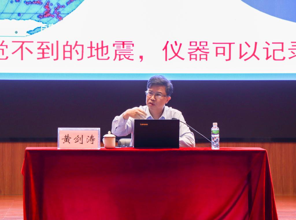 黃劍濤從地震的基本概念、地震的分類及特點(diǎn)導(dǎo)入,通過翔實(shí)數(shù)據(jù)和鮮活的實(shí)例向師生普及了地震知識(shí)。他深入講解了地震科技應(yīng)用、地震科技在防震減災(zāi)和國際救援中的重要作用以及地震科技的未來發(fā)展方向。黃劍濤指出,地震科技應(yīng)用能有效減輕地震災(zāi)害,為保障人民群眾生命安全、各行各業(yè)生產(chǎn)安全以及國家安全提供堅(jiān)實(shí)支撐。