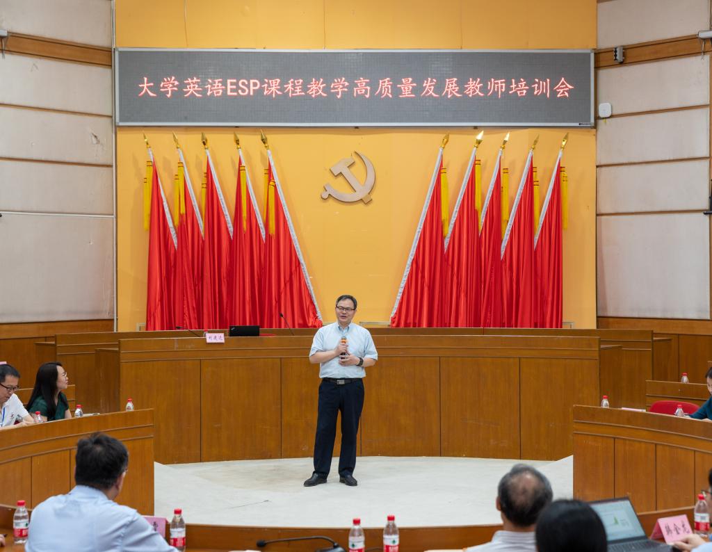 為深入學(xué)習(xí)貫徹習(xí)近平新時(shí)代中國(guó)特色社會(huì)主義思想和黨的二十大精神,深入推進(jìn)大學(xué)英語(yǔ)ESP課程教學(xué)高質(zhì)量發(fā)展,提升青年英語(yǔ)教師課堂教學(xué)及科研能力,促進(jìn)外語(yǔ)教師省際校際教學(xué)經(jīng)驗(yàn)交流,5月20日,廣東省本科高校大學(xué)英語(yǔ)課程教學(xué)指導(dǎo)委員會(huì)、復(fù)旦新學(xué)術(shù)、復(fù)旦大學(xué)出版社聯(lián)合五邑大學(xué)召開(kāi)大學(xué)英語(yǔ)ESP課程教學(xué)高質(zhì)量發(fā)展教師培訓(xùn)會(huì),來(lái)自省內(nèi)外高校120余名一線教師齊聚五邑大學(xué)參加本次會(huì)議。