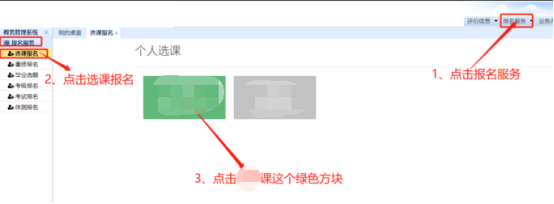 操作步驟:選課報名——個人選課——點擊綠色的方塊。對想選的課程 點擊“選課”——點擊“確定”——若需退選 點擊“取消”——點擊“確定”。