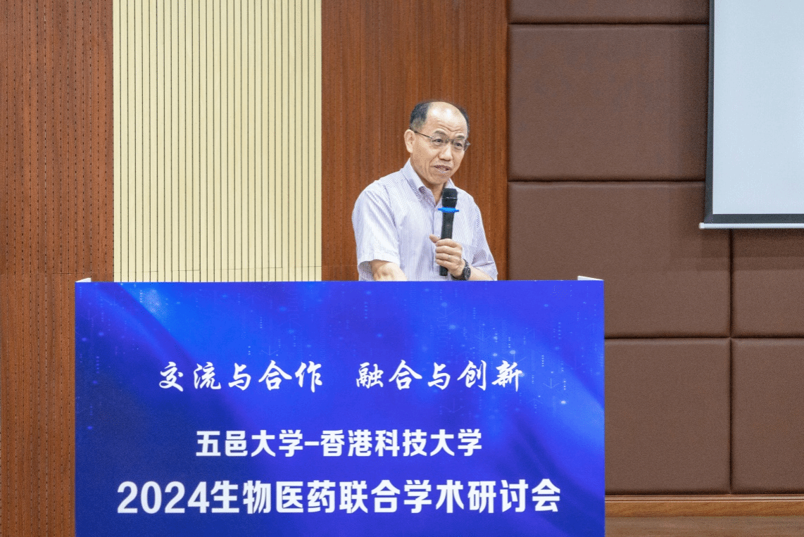 2024年5月27日,五邑大學—香港科技大學2024生物醫(yī)藥聯(lián)合學術會議在五邑大學馬蘭芳樓307學術報告廳舉行。此次由五邑大學藥學與食品工程學院主辦,香港科技大學中藥研發(fā)中心與香港中醫(yī)藥生物科技聯(lián)會協(xié)辦的生物醫(yī)藥聯(lián)合學術研討會,匯集了生物醫(yī)藥領域頂尖專家和學者,旨在追蹤國際生物醫(yī)藥研究前沿,促進粵港澳大灣區(qū)高校間的交流與合作,并推進研究生的聯(lián)合培養(yǎng)。