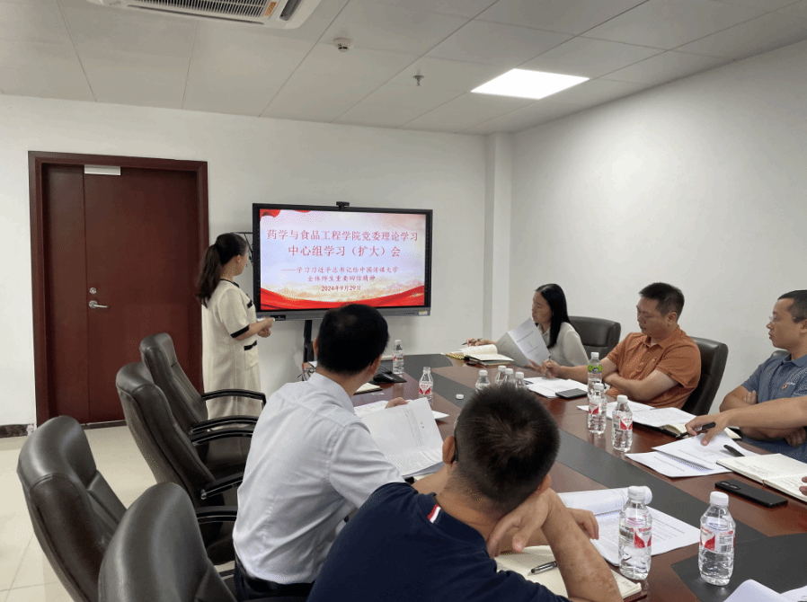 9月29日上午,藥學與食品工程學院黨委理論學習中心組召開學習(擴大)會,深入學習貫徹落實黨的二十屆三中全會精神,全體黨委委員、師生黨支部書記參加了學習會,并結(jié)合學院當前工作和重點發(fā)展目標,展開熱烈討論。院黨委書記謝輝玲主持會議,學生處羅丹處長、學生事務(wù)管理科楊燕科長作為列席旁聽工作組成員指導了本次學習會。