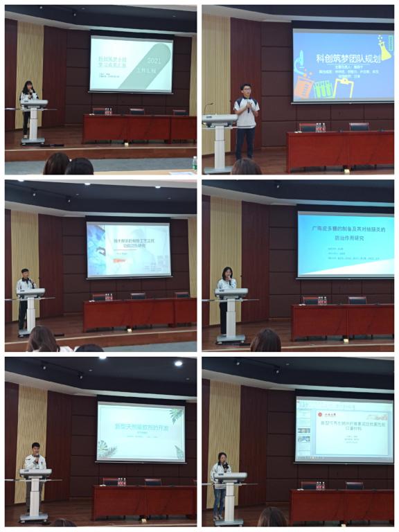 首先,劉子熙通過具體的圖文、數(shù)據(jù)全面總結(jié)2020年“科創(chuàng)筑夢(mèng)”各項(xiàng)工作并提出2021年工作計(jì)劃。隨后,田盈、趙曉琳等23個(gè)團(tuán)隊(duì)代表依次上臺(tái)做2020年下半年科研總結(jié)以及2021年行動(dòng)計(jì)劃報(bào)告。接著,舒穎同學(xué)進(jìn)行題為“新型可再生納米纖維素高效抗菌性能口罩材料”的研究分享,通過項(xiàng)目靈感、實(shí)驗(yàn)室階段以及如何產(chǎn)業(yè)化三個(gè)部分與同學(xué)們分享自身團(tuán)隊(duì)的經(jīng)驗(yàn)。最后,黃應(yīng)忠進(jìn)行總結(jié)講話,對(duì)各科創(chuàng)團(tuán)隊(duì)的研究、取得的成績以及目標(biāo)和計(jì)劃給予充分肯定,進(jìn)一步明確“科創(chuàng)筑夢(mèng)”的意義,旨在通過“科創(chuàng)筑夢(mèng)”提高同學(xué)們的專業(yè)、表達(dá)、溝通協(xié)調(diào)等能力,努力培養(yǎng)德智體美勞全面發(fā)展的社會(huì)主義建設(shè)者和接班人。