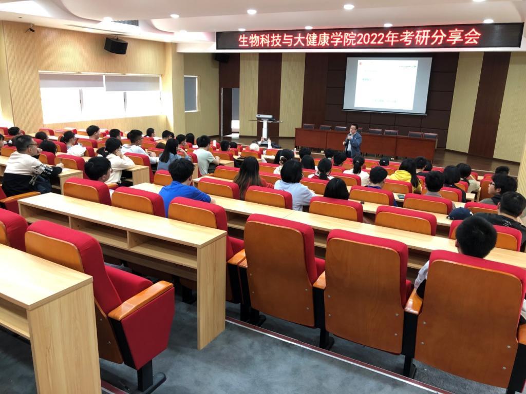 為進一步做好考研學生的指導和服務工作,3月4日,生物科技與大健康學院在馬蘭芳樓307報告廳舉辦2022年考研分享會。學院黨委書記許皓、副書記黃應忠、輔導員黃作宏、2018級考研學生代表及其他年級有考研意向的學生參會,分享會由學院副院長馬愛軍主講。
