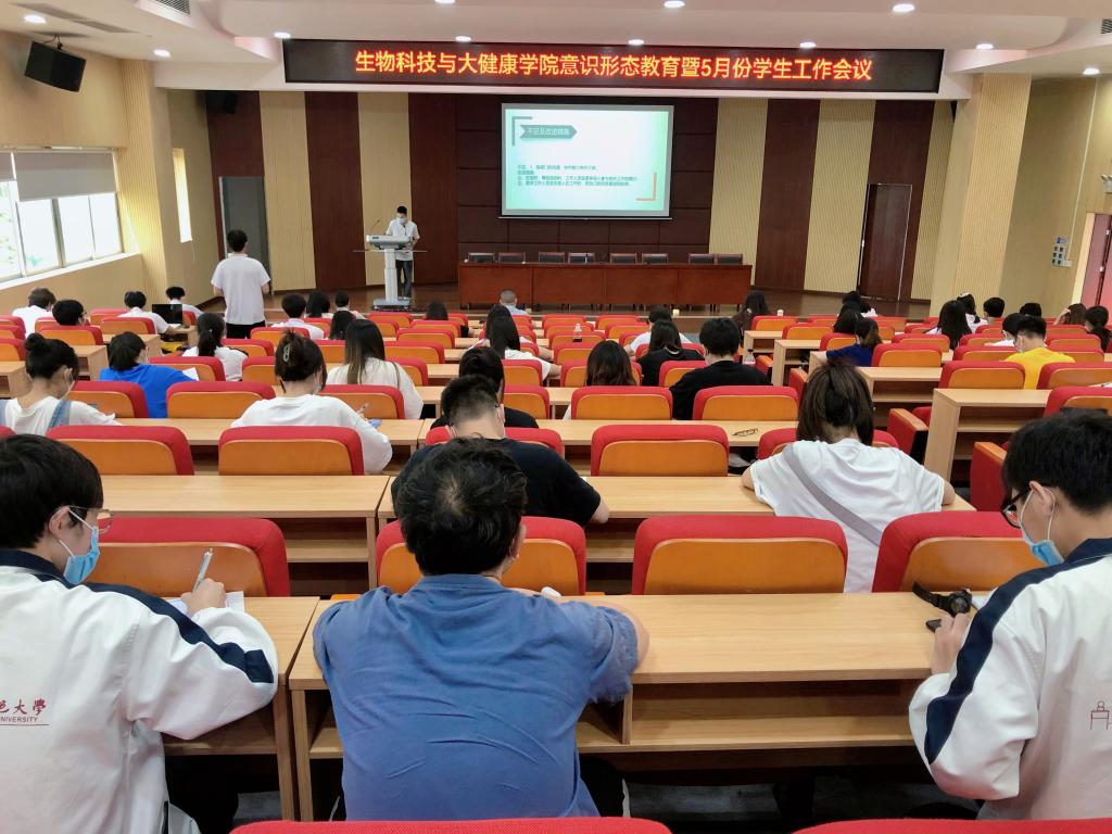 5月10日,生物科技與大健康學院在馬蘭芳樓307報告廳召開意識形態教育暨5月份學生工作會議,學院黨委副書記黃應忠、輔導員、各學生組織學生干部及各班級班委代表參加會議。