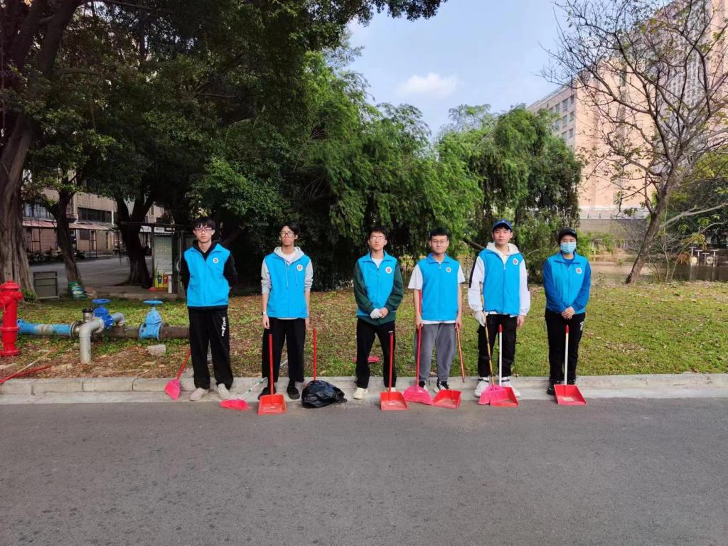 活動開展前,同學們積極踴躍報名。活動過程中,同學們攜帶清潔工具準時到達指定地點進行分小組、劃區域的勞動。同學們有序清潔德勝樓、黎耀華樓周邊校道,并清理草坪上的落葉和垃圾。志愿者同學相互配合,相互幫忙,認真仔細地打掃,不遺漏每一處角落,彰顯出團結、熱情的氛圍并高效完成本次清潔活動,用自己的辛勤勞動換來更加干凈美麗的校園環境。