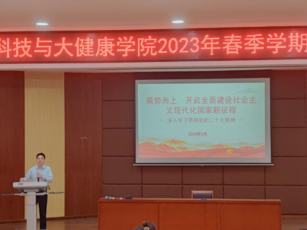 為深入貫徹學習習近平新時代中國特色社會主義思想和黨的二十大精神,根據學校《關于做好2023年春季學期學院(部)黨組織書記、院(部)長上第一堂思政課工作的通知》要求,生物科技與大健康學院黨委副書記王婷、院長陳文華于3月19日、3月20日分別為學院部分共青團干、積極分子、2022級本科新生以及全體研究生入黨積極分子、發展對象講授春季學期第一堂思政課。