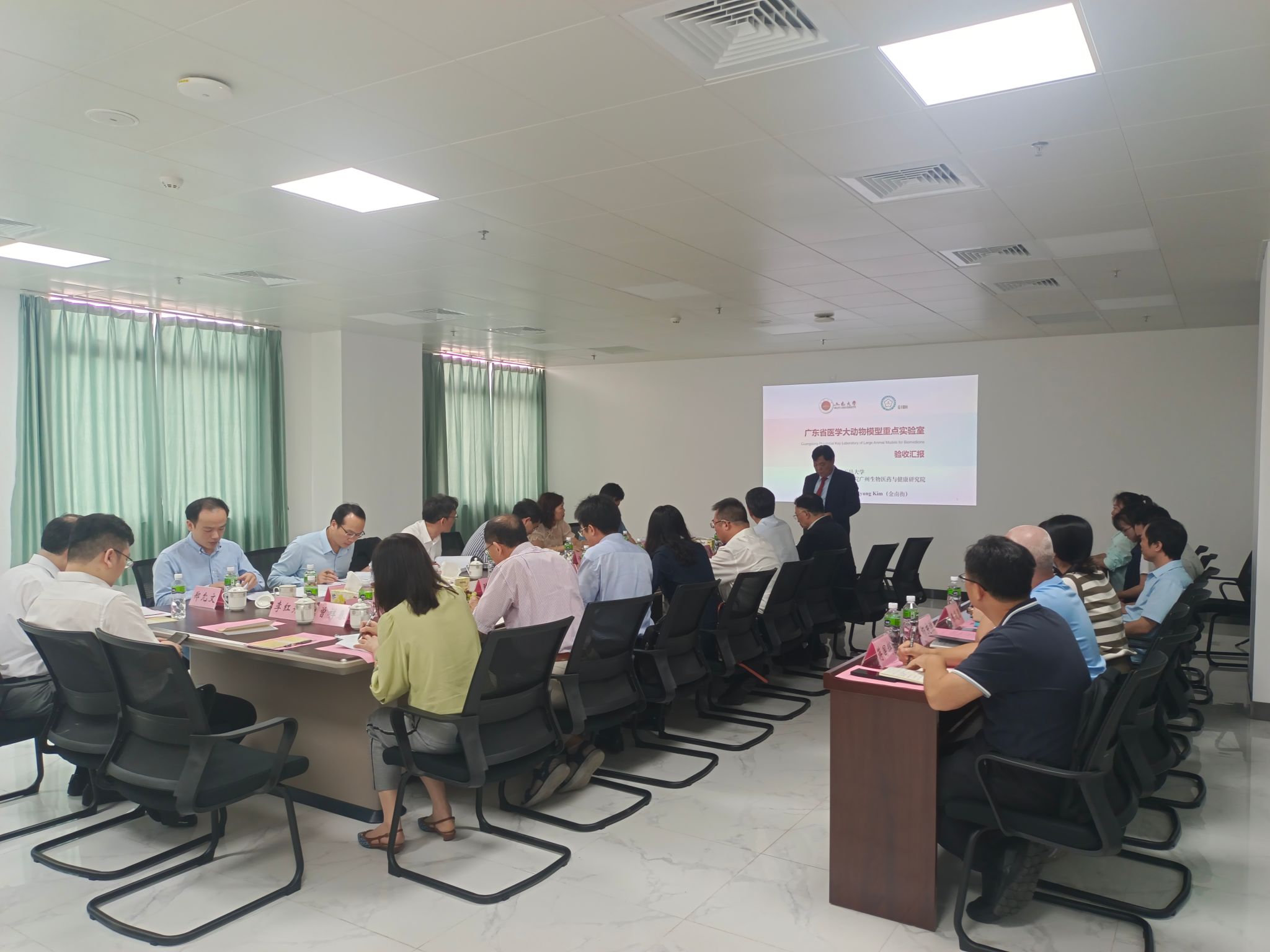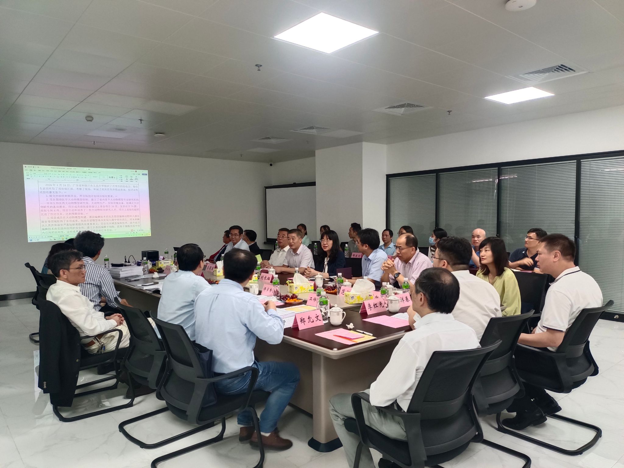 2024年4月24日,廣東省科技廳組織專家,對廣東省醫學大動物模型重點實驗室建設任務完成情況進行了集中驗收,江門市科技局局長劉長虹,學校校長張運華,黨委副書記李靄康,科技處處長陳文華,廣東省醫學大動物模型重點實驗室全體成員及學校相關部門負責人參加了此次驗收會。