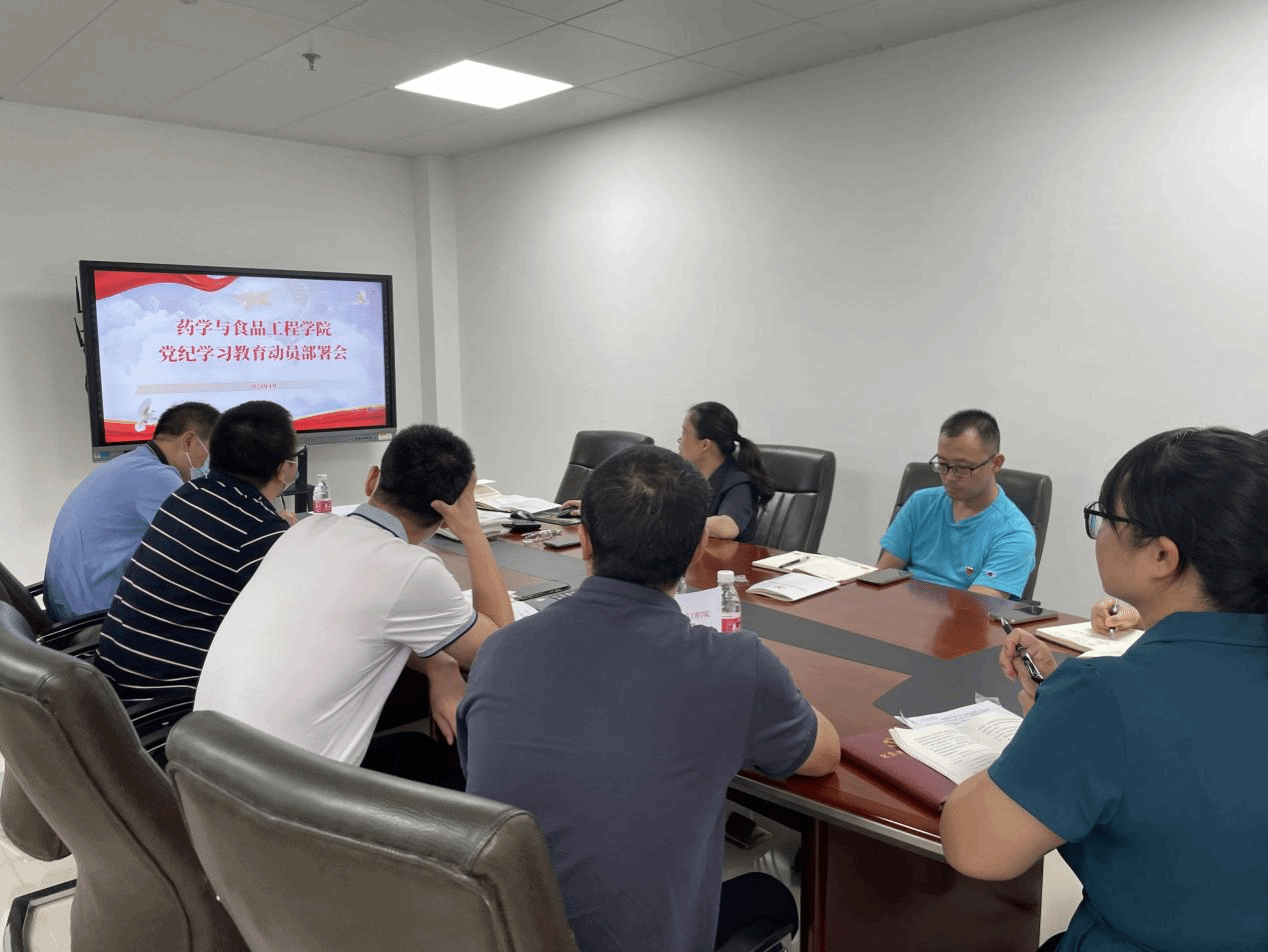 會上,謝輝玲領學了習近平總書記關于黨紀學習教育的重要講話和重要指示批示精神,傳達學習中共中央辦公廳《關于在全黨開展黨紀學習教育的通知》精神以及黨中央、省委相關工作部署和學校黨委關于黨紀學習教育的有關要求,接著宣讀了《藥學與食品工程學院黨委關于開展黨紀學習教育的工作方案》,部署學院黨紀學習教育工作。