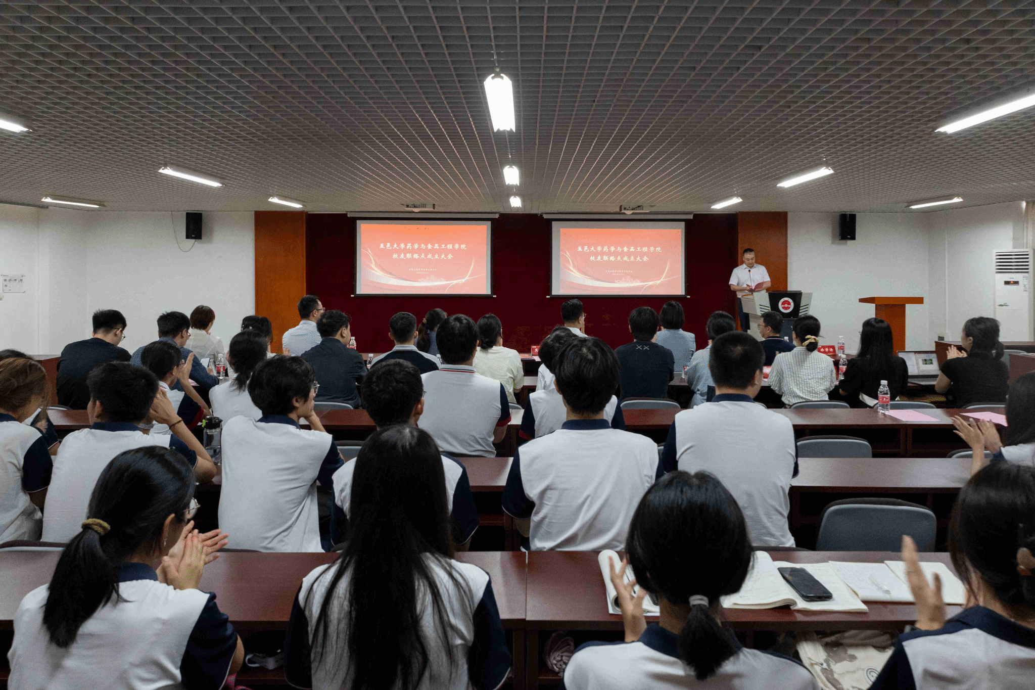 2025年6月21日,五邑大學校友總會藥學與食品工程學院校友聯絡點成立大會在北主樓1510會議室順利舉行。校友總會辦公室主任莫樹培、綜合科副科長吳耀銘,學院班子成員、教師代表、各屆校友代表及在校學生代表等近80人齊聚一堂,共同見證這一重要時刻。大會由學院副院長徐學濤主持。
