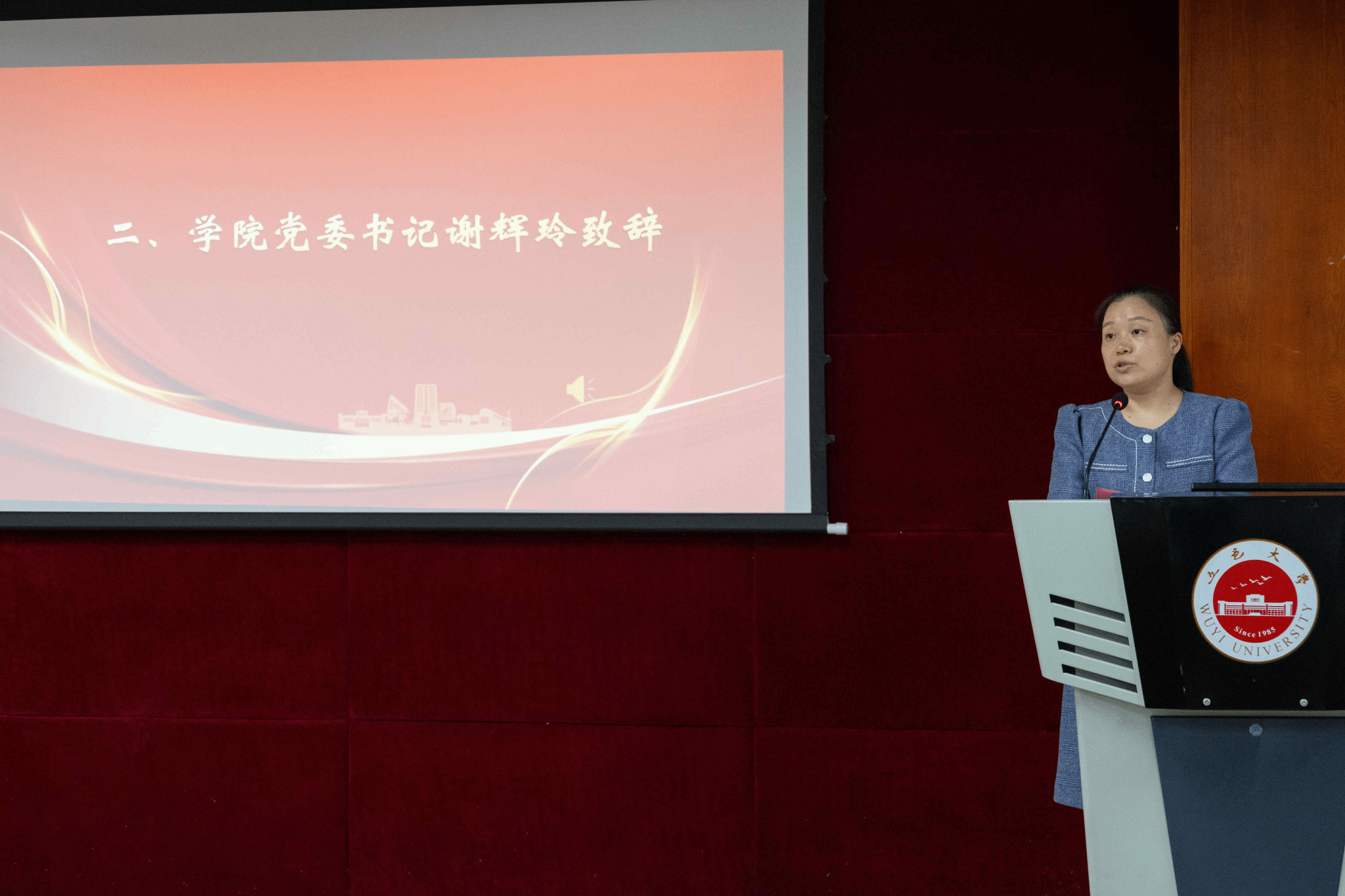 成立大會在激昂的校歌聲中拉開序幕。學院黨委書記謝輝玲發表熱情洋溢的致辭。她代表學院向校友聯絡點的成立表示熱烈祝賀,誠摯歡迎與會校友,并向衷心感謝校友聯絡員的辛勤付出。
