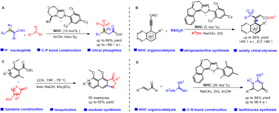 2. Yan, J.-L.?; Maiti, R.?; Ren, S.-C.; Tian, W.; Li, T.; Xu, J.; Mondal, B.; Jin, Z.*; Chi, Y. R.* Carbene-Catalyzed Atroposelective Synthesis of Axially Chiral Styrenes. Nat. Commun. 2022, 13, 84.
