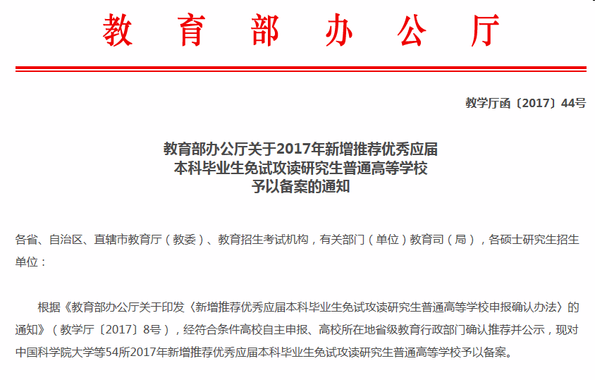 2017年8月,學校獲批可推薦優秀應屆畢業生免試攻讀研究生資格。