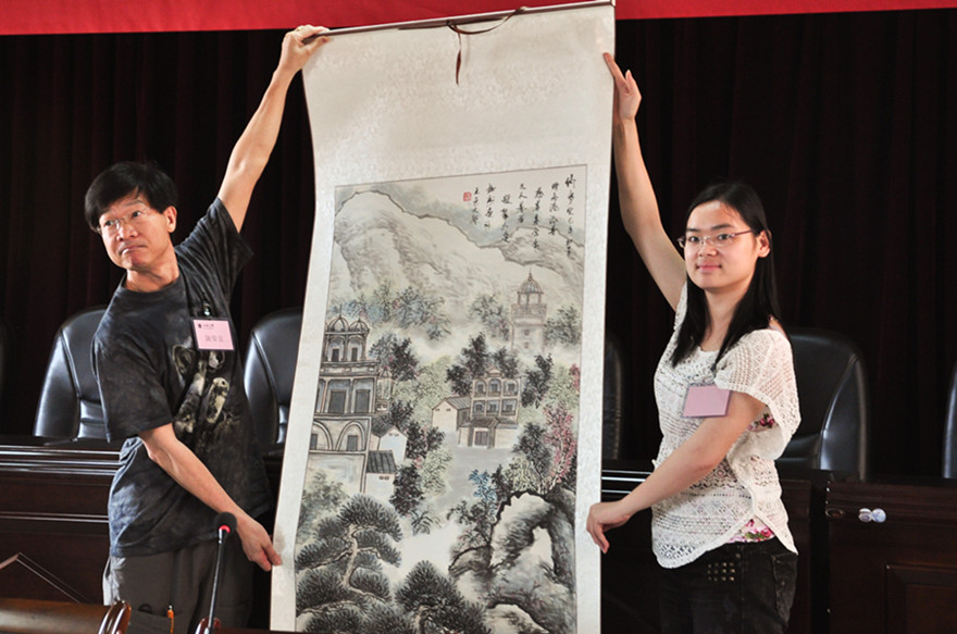 受助學生積極發言,紛紛表示經過三次助學活動與愛心人士的深入交流,他們被愛心人士樂觀向上的人生態度所感染。因為愛心人士的鼓勵,有的積極參加各種活動鍛煉自己;有的及時調整自己的學習狀態,重新確定學習目標;有的學習愛心人士的慈善行為,在課外參加義工活動,傳遞愛心。基金會愛心人士看到學生的成長深受感動,激勵學子們要不怕困難,敢于吃苦,奮發學習,活在當下,珍惜眼前。其中一對愛心人士當場決定下次助學活動再多資助一名學生。活動現場其樂融融,溫馨感人。受助學生集體向基金會贈送了我校藝術系學生楊濤創作的國畫《僑鄉》以表謝意。
