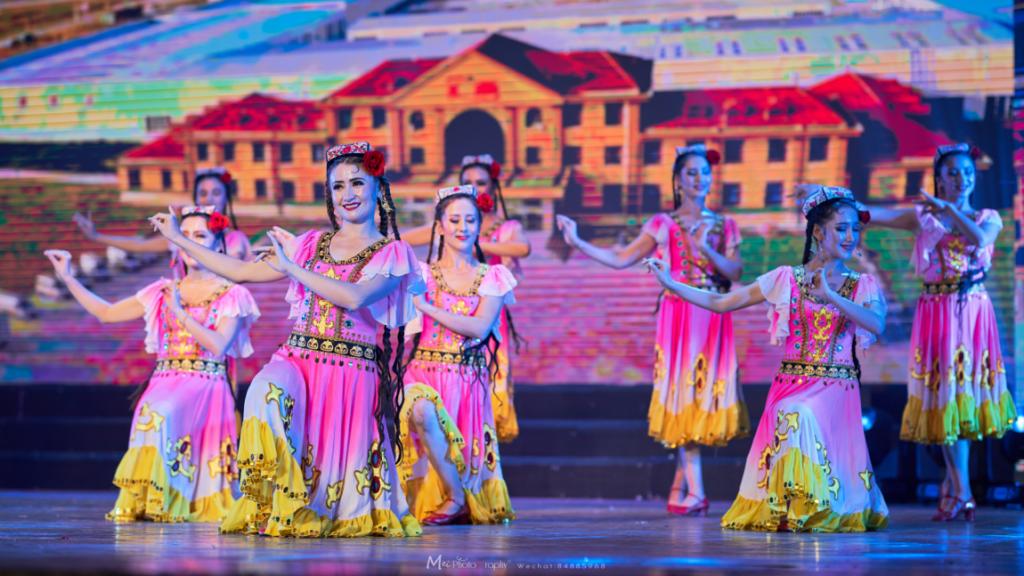 為了感謝廣東大愛援疆,三師圖市黨委安排師市文化交流團來粵開展巡回演出,以期用富有地區特色的民族歌舞和反映援疆成果的現代歌舞,表達三師圖市各族干部職工群眾對廣東社會各界大力支援和廣大援疆援疆干部人才無私奉獻的感恩之情。對此,我院積極組織舞蹈系主任張友元老師帶領大一、大二舞蹈專業學生代表一同前往演出現場,這不僅僅是對新疆舞蹈文化的學習,更是感恩教育的重要一課!觀摩學習的過程中,同學們深受新疆兵團舞者們的感染,6名學生主動與舞者們一同互動表演,場面熱鬧、氣氛活躍。