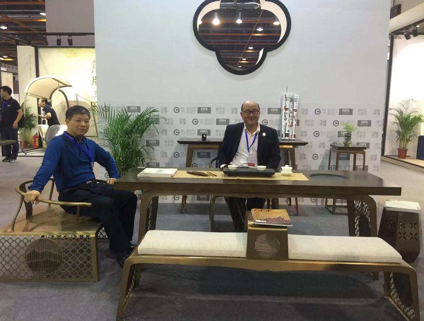 12月1日,第九屆“省長杯”工業(yè)設(shè)計大賽頒獎儀式在廣州琶洲南豐國際會展中心舉行。頒獎典禮結(jié)束后,廣東省副省長陳良賢在省政府副秘書長任小鐵、省工業(yè)和信息化廳廳長涂高坤等陪同下,參觀了第九屆“省長杯”工業(yè)設(shè)計大賽家具專項賽作品展區(qū)。陳良賢副省長參觀的第一站就是由五邑大學(xué)陳振益老師帶領(lǐng)團(tuán)隊主持設(shè)計的榮獲本屆家具專項賽概念組一等獎的作品“棠堂金屬茶室系列”家具。廣東省家具協(xié)會會長王克向省領(lǐng)導(dǎo)介紹了作品的設(shè)計理念和創(chuàng)新特色之處。之后五邑大學(xué)副校長陳廷根帶領(lǐng)廣東財經(jīng)大學(xué)黨委書記黃曉波及廣東財經(jīng)大學(xué)藝術(shù)設(shè)計學(xué)院領(lǐng)導(dǎo)來到展位參觀,介紹了五邑大學(xué)的獲獎作品及辦學(xué)理念。
