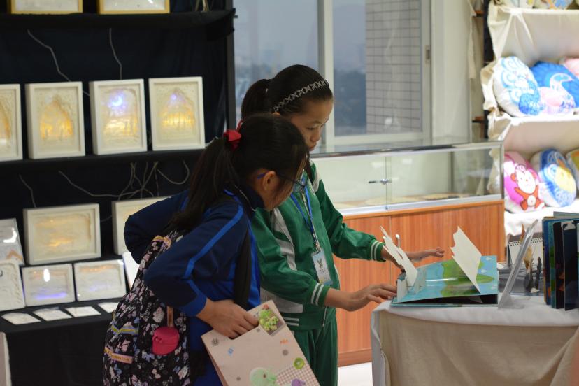 呂校長和黃校長一行率領兩校師生代表先后參觀了藝術設計學院服裝設計、視覺傳達設計、環境設計、工業設計認知實驗室,以及江門市非物質文化遺產及工藝美術展廳,參觀過程中彼此還交流了關于粵港澳大灣區建設的重大發展機遇問題,希望通過大手拉小手、小手牽大手系列活動,進一步推動大灣區青少年之間的文化交流。同時,由我院與培英小學結成黨建共建項目的藝術學堂志愿者為來訪的小朋友們提供講解服務,好奇心和求知欲為小朋友們打開了一扇藝術之窗,通過展品和介紹,令他們對僑鄉文化有了更多了解。